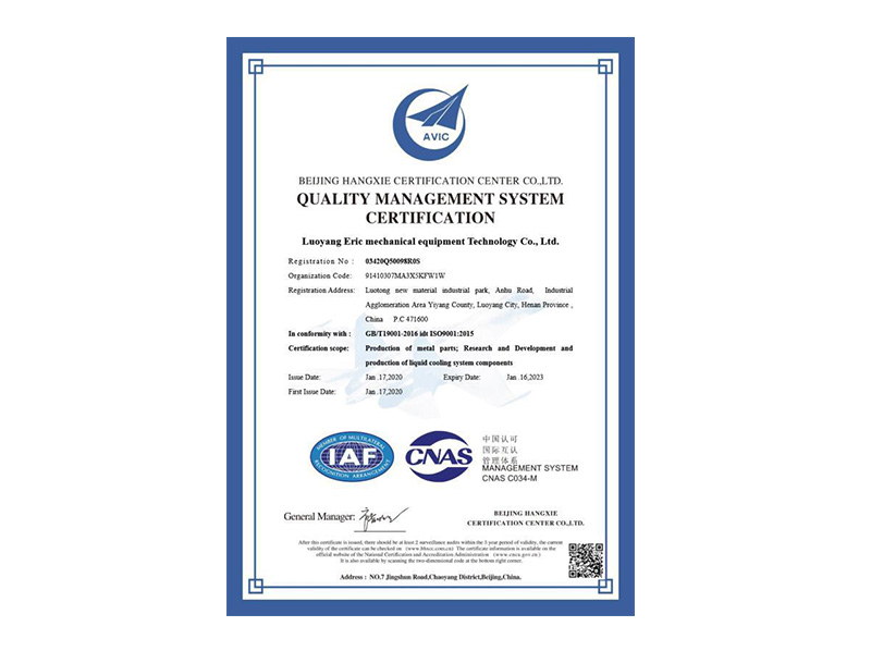 公司通过了GB/T19001-2016质量管理体系认证,体现了公司卓越的质量控制水平和综合竞争力。